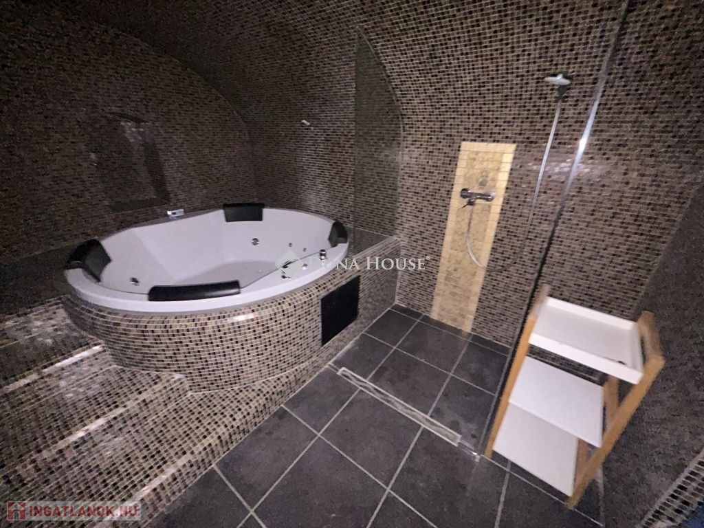 - Külön WC szagelszívással, valamint üvegajtóval elválasztott zuhany és masszázsmedence vízálló TV-vel