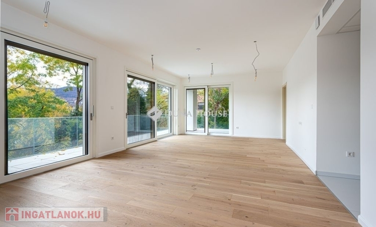 Pasarét zöldövezeti részén, a II. kerület egyik legkedveltebb pontján épült meg 2025-ben ez az exkluzív, ötlakásos, liftes társasház, amely modern építészetével, prémium anyaghasználatával és innovatív technológiáival a kortárs luxus új szintjét képviseli. A 2234 m²-es telken álló háromszintes épület a természetközeli életérzést ötvözi a városi kényelemmel, nagy hangsúlyt fektetve a tágas, világos életterekre és a privát szférára. Minden lakás teraszos, a felszereltség része a jacuzzi és a pergola, a földszinti otthonok kertkapcsolatosak, a felsőbb szintekről zöld lombkoronára vagy panorámára nyílik kilátás.