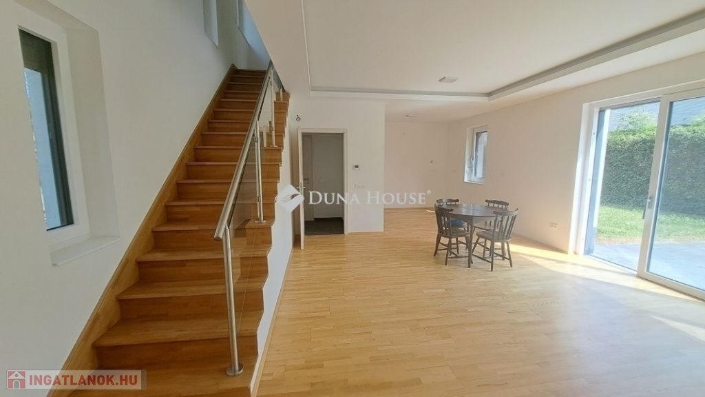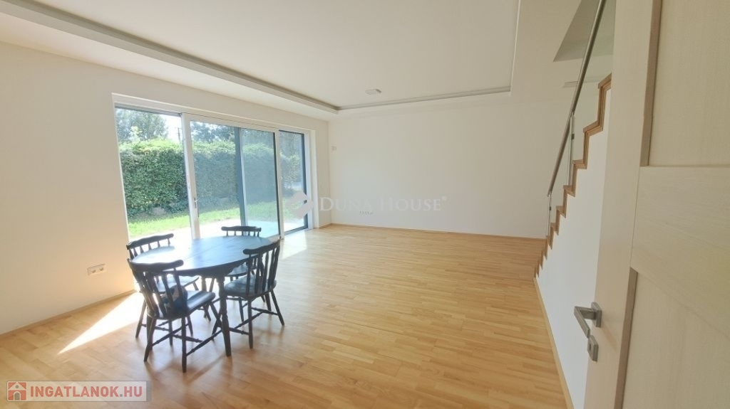 Földszint tágas nappali, modern konyha, közvetlen kertkapcsolat, ideális családi és baráti együttlétekhez.