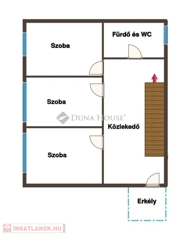 Emelet: 3 hálószoba, elegáns fürdőszoba, hangulatos erkély, ahol nyugodtan pihenhet.