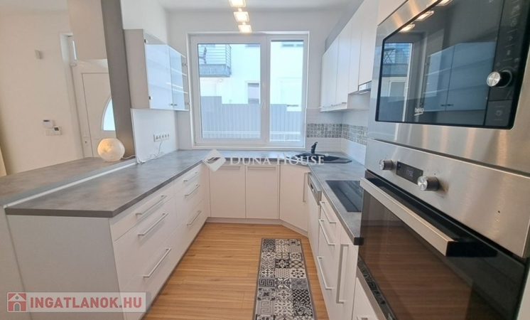 Az alagsorban ablakos és bevilágított mosókonyha található, valamint innen közelíthető meg egy közös tároló és a teremgarázs is.