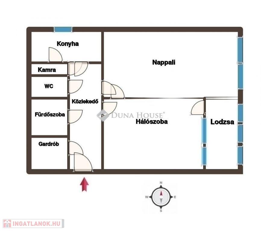 A 49 m²-es lakás térkihasználása példás: a két szoba külön nyílik, így a privát szféra garantált, akár pároknak, akár kisgyermekeseknek. A rendszerezést egy külön gardróbszoba és az ablakos konyhából nyíló kamra segíti – ezek a tárolóhelyek panelban aranyat érnek! A térérzetet tovább növeli az ablakokkal ellátott loggia, amely télen-nyáron extra helyiségként funkcionál.