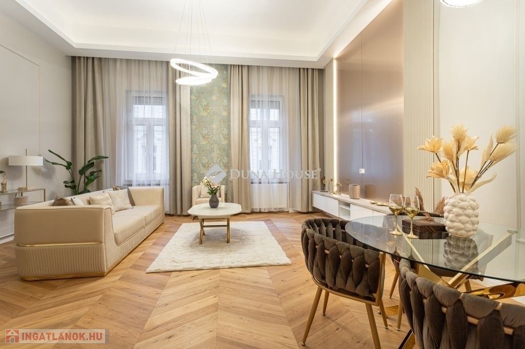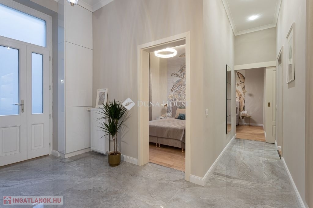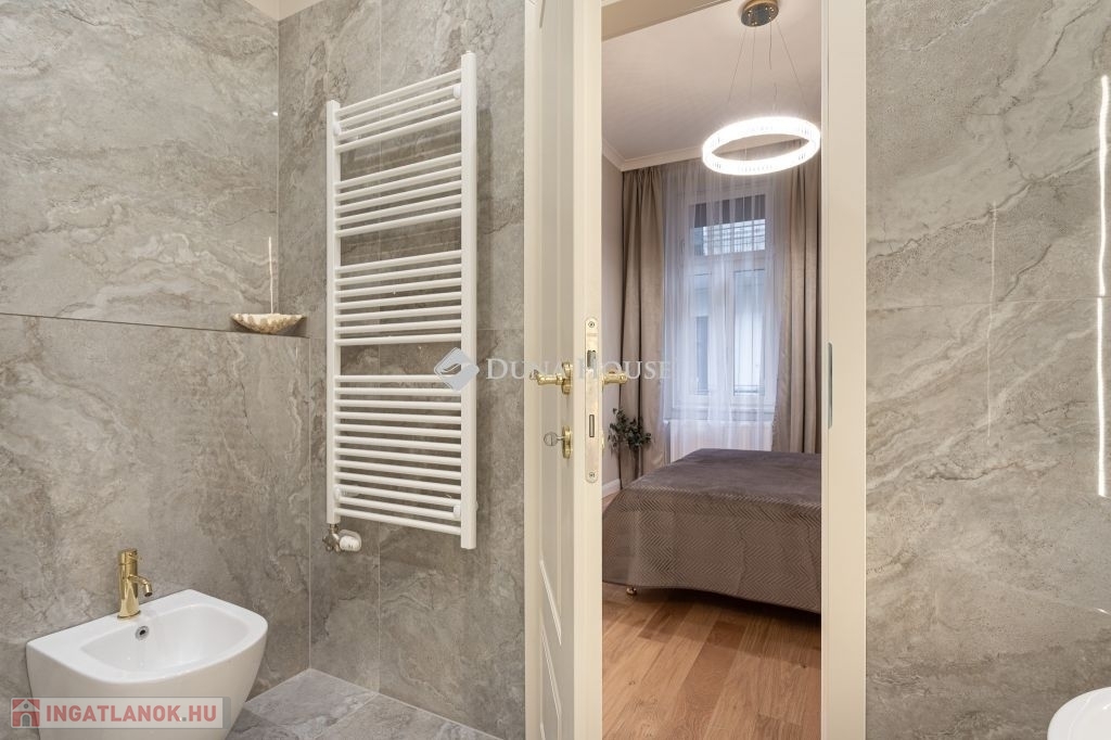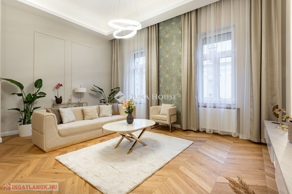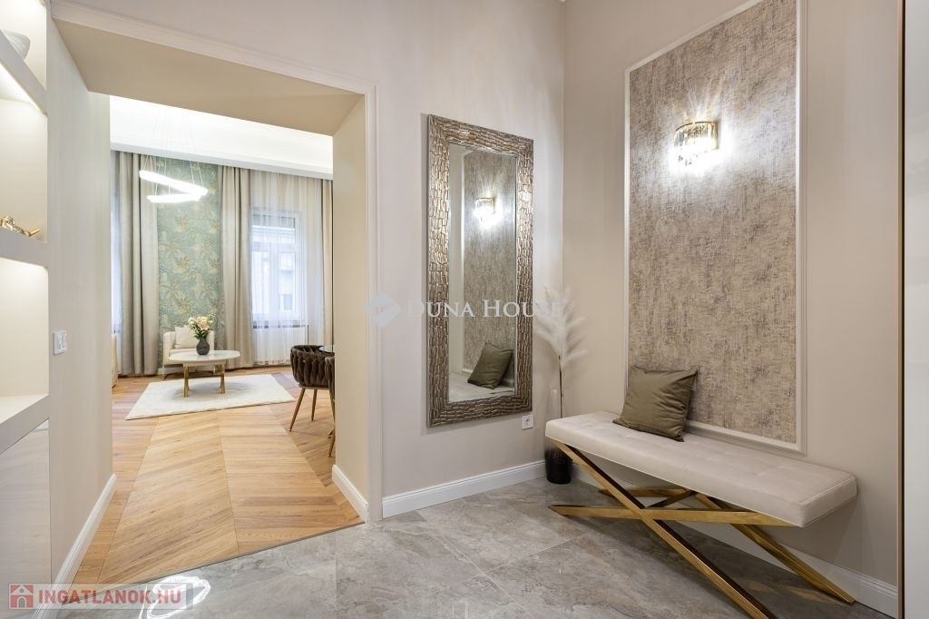 In the heart of Budapests 5th district, just a few steps from the Danube, this 86 m² luxury apartment is now for sale. Featuring a spacious living room, two bedrooms (each with its own bathroom), and a walk-in wardrobe, this home perfectly blends classic grandeur with modern sophistication.