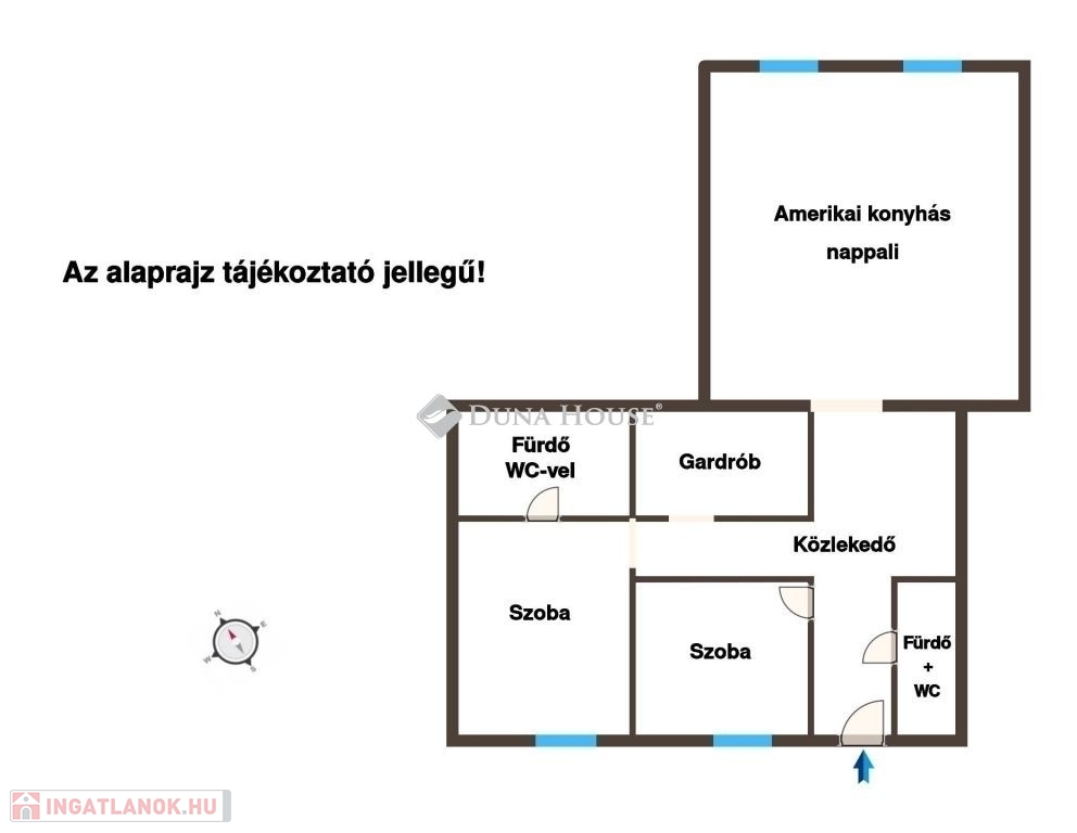 - nappali + 2 külön nyíló hálószoba, mindkettő saját fürdővel