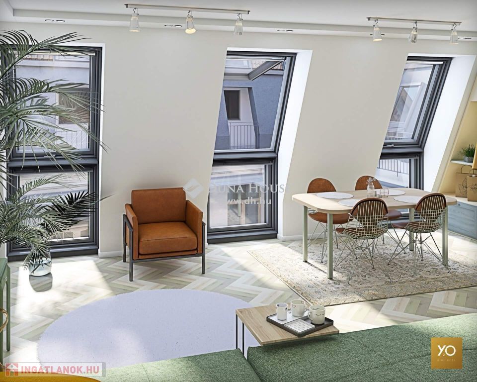 Budapesten, a belvárosban, a körúton belül, közel a Nyugati pályaudvarhoz, exkluzív fejlesztés épül!A lakások egyedisége egyrészt a régi idők és a modern kor ötvözetében rejlik. Az ingatlanok egy klasszikus épületben kapnak helyet, melynek teljes körű felújítása során, a legfelső szinten 12 modern, panorámás, nagy tetőtetőteraszos okosotthon kerül kialakításra.A projekt értékteremtő és megőrző is egyben: a ház új külsőt és belső megújuláson esik át, és az új otthonokat környezettudatos, energiatakarékos és modern megoldásokkal alakítják ki.Megtalálható itt az egy szobás garzontól kezdve az 5 szobás, nagy terekkel rendelkező lakás is, 24-86 nm-es alapterületekkel.Az építkezés elkezdődött, a lakások várható átadása 2024. II. negyedévére várható.