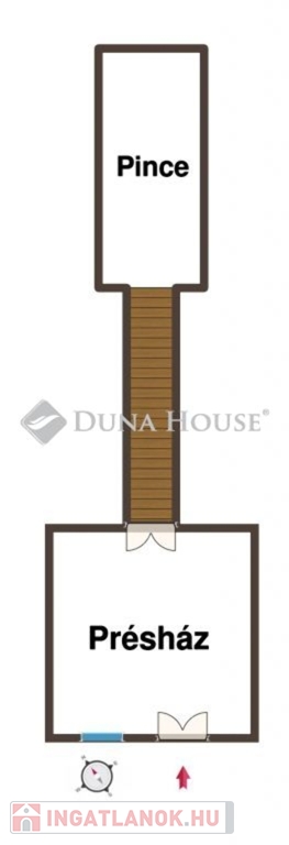 A présházhoz tartozik egy telek is, így nem közvetlenül az útról kell belépni az ingatlanba!